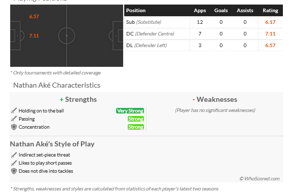 Σύμφωνα με όσα αποκάλυψε ο πρώην αρχισκάουτερ της Μάντσεστερ Γιουνάιτεντ, Mick Brown, ο Pep Guardiola δεν θεωρεί πλέον τον 30χρονο άσο ως βασικό στέλεχος των πλάνων του. Ο Ake έχει καταγράψει ελάχιστες συμμετοχές ως βασικός τη φετινή σεζόν, με τον ρόλο του να περιορίζεται κυρίως σε συμπληρωματικές συμμετοχές στα τελευταία λεπτά των αγώνων, προκειμένου να προσφέρει αμυντική ασφάλεια όταν η Σίτι δέχεται πίεση.