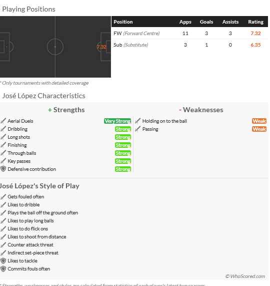 Δείτε την καρτέλα με τα χαρακτηριστικά του παίκτη στο Whoscored και ένα βίντεο με τις ικανότητες του.