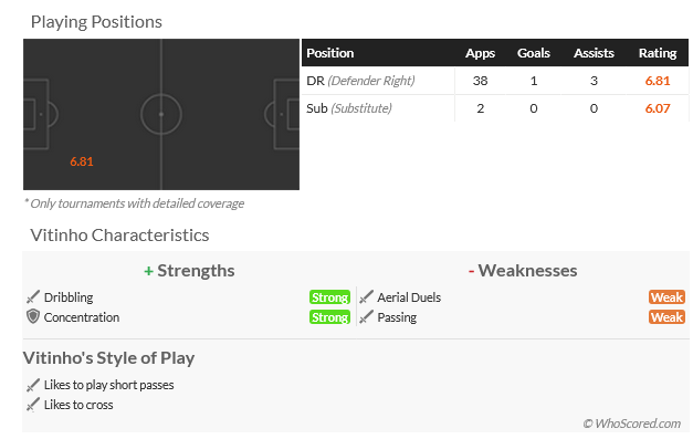 Δείτε παρακάτω την καρτέλα του παίκτη στο Whoscored και ένα βίντεο από εμφανίσεις του