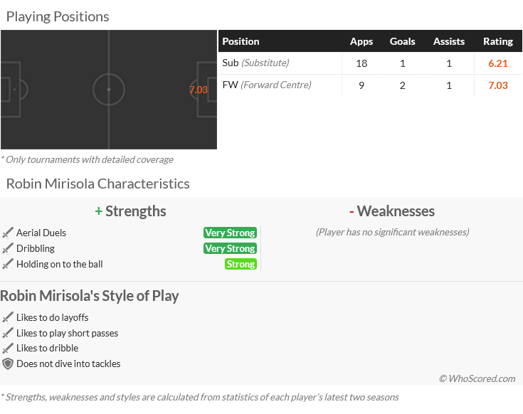 Αν και ο νεαρός δείχνει ένα εξαιρετικό ταλέντο που αξίζει να προσεχθεί εκφράζονται έντονες αμφιβολίες αν είναι ο παίκτης που μπορεί να σταθεί στην πρώτη ομάδα.Η βάσιμη πιθανότητα είναι αν αποκτηθεί να προορίζεται σε πρώτο στάδιο για Κ21 της ομάδας.Ακολουθεί η καρτέλα του παίκτη στο Whoscored και ένα βιντεακί από το Youtube.