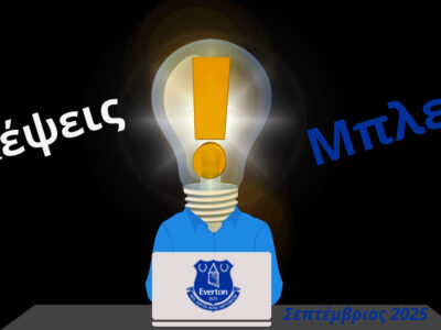 ΣΚΕΨΕΙΣ ΜΠΛΕ (ΣΕΠΤΕΜΒΡΙΟΣ 2025) 01 Οκτ 2025Απόψεις, Σκέψεις ΜπλέDamianos Οι Σκέψεις Μπλε επιστρέφουν και αυτόν τον μήνα για να σχολιάσουν την επικαιρότητα της Έβερτον: το απογοητευτικό φινάλε των μεταγραφών, τα αποτελέσματα... Διαβάστε περισσότερα0